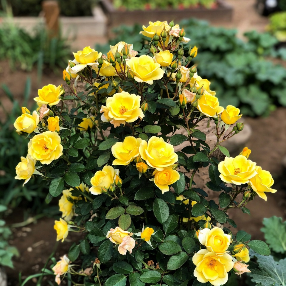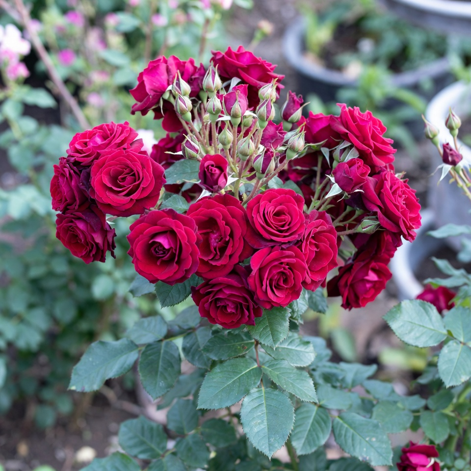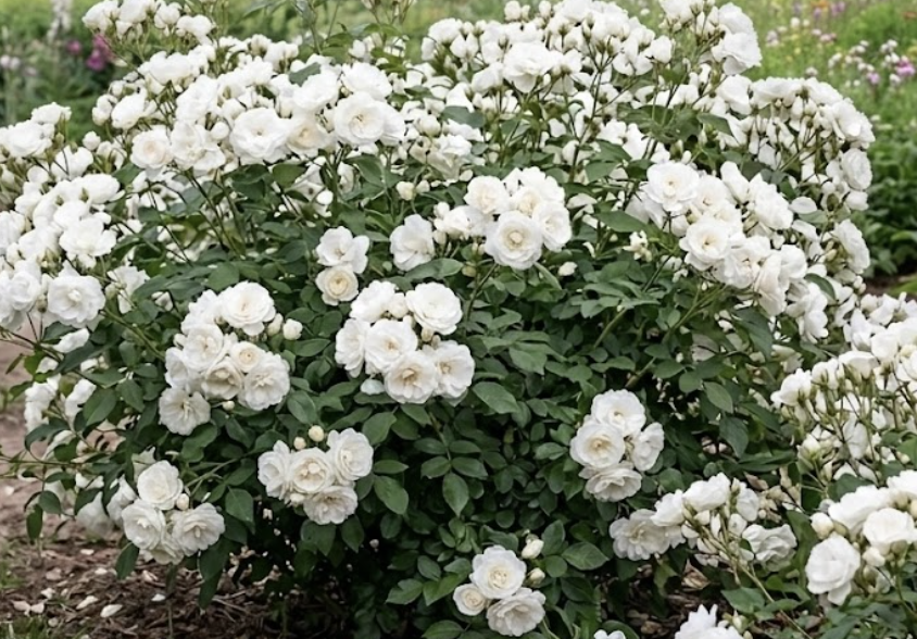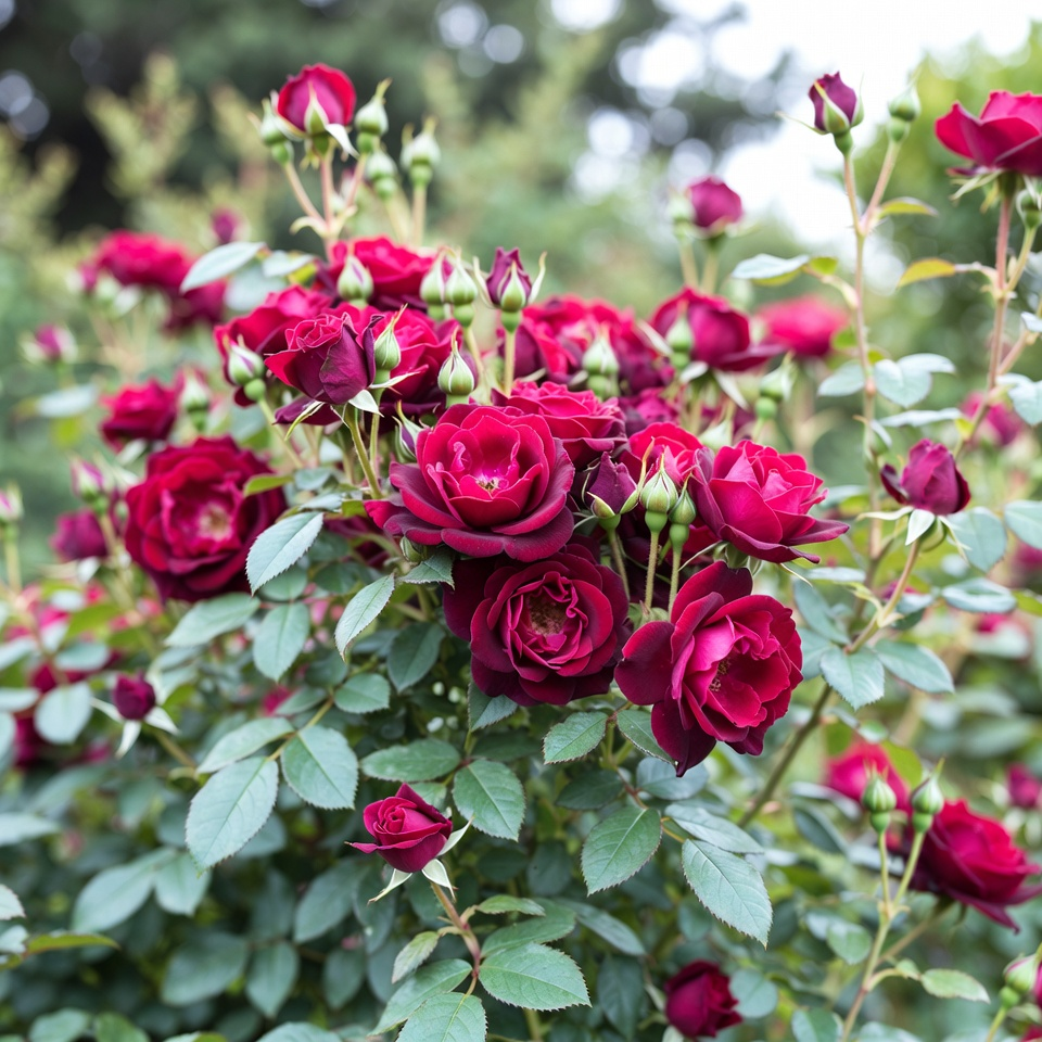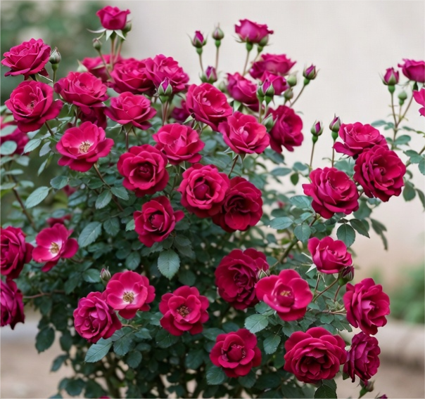 Завдяки коротким міжвузлям, бутони закладаються не лише на верхівці, а по всій довжині гілки. Це створює ефект густого квіткового полотна без порожніх місць біля основи куща.
