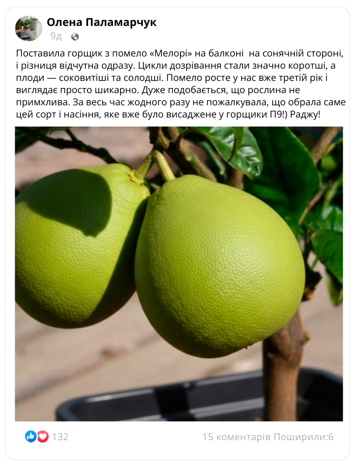 Встигніть придбати насіння помело «Мелорі» у горщиках П9 за спеціальною ціною: